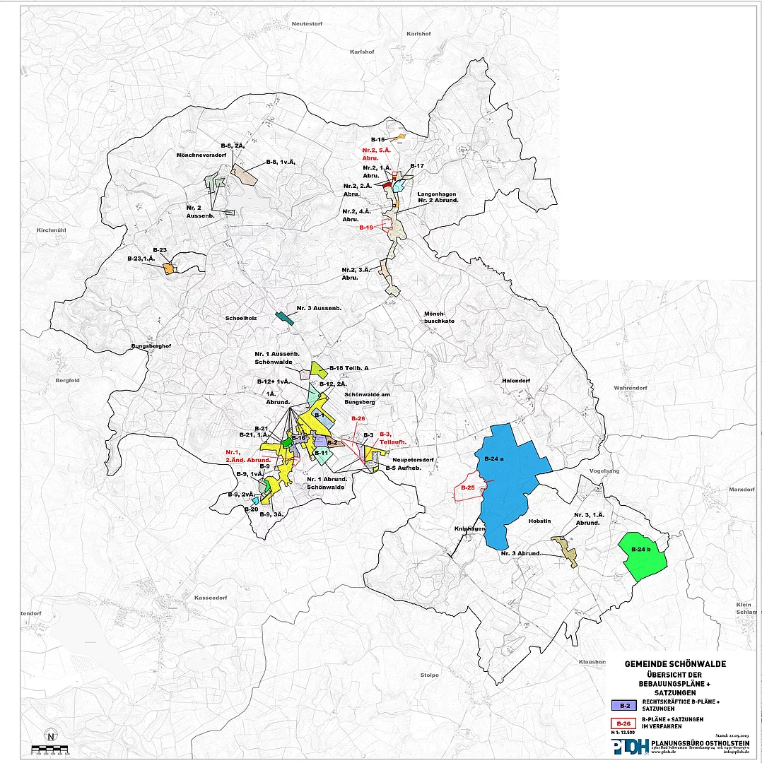 Übersichtsplan der Bebauungspläne der Gemeinde Schönwalde a. B.